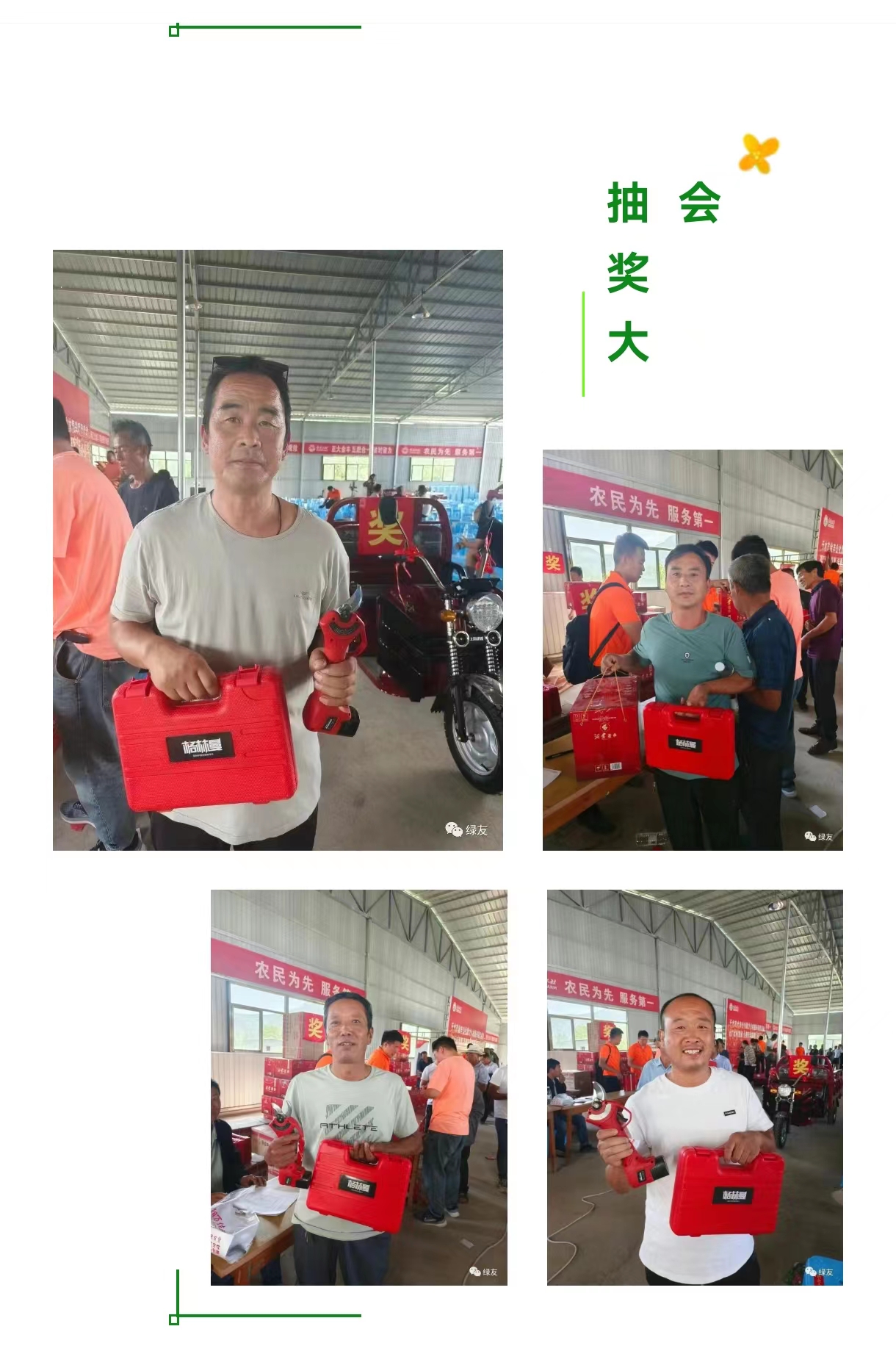 西安綠友園林機(jī)械有限公司寶雞分公司攜手某公社分別于8月24日和9月3日舉辦助力鄉(xiāng)村振興項(xiàng)目千人抽獎(jiǎng)大會(huì)。每場(chǎng)次參會(huì)人員均達(dá)千余人,綠友公司的格林曼電動(dòng)修枝剪作為獎(jiǎng)品,廣受農(nóng)戶好評(píng)。
