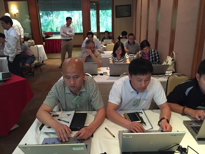 此次培訓作為全新的A系列新產品全面推向市場的正式培訓,也是迪爾面對整個亞洲市場的第一次正式培訓,因此聚集了亞洲十幾個國家二十多家經銷商的四十余名學員,為了節省費用,提高培訓效率,這次培訓將銷售培訓和技術培訓整合到了一起,主要由來自約翰·迪爾美國培訓中心經驗豐富的Garry和Mike兩位講師授課,而約翰·迪爾中國市場部銷售服務經理李恩中的全程參與和同步中文翻譯并加以必要的講解和補充,使得我們對培訓內容能夠100%的了解和接受,大大提高了培訓的有效性。
