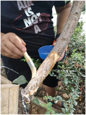 將腐爛的樹皮刮掉,刮干凈腐爛部分,露出正常組織。