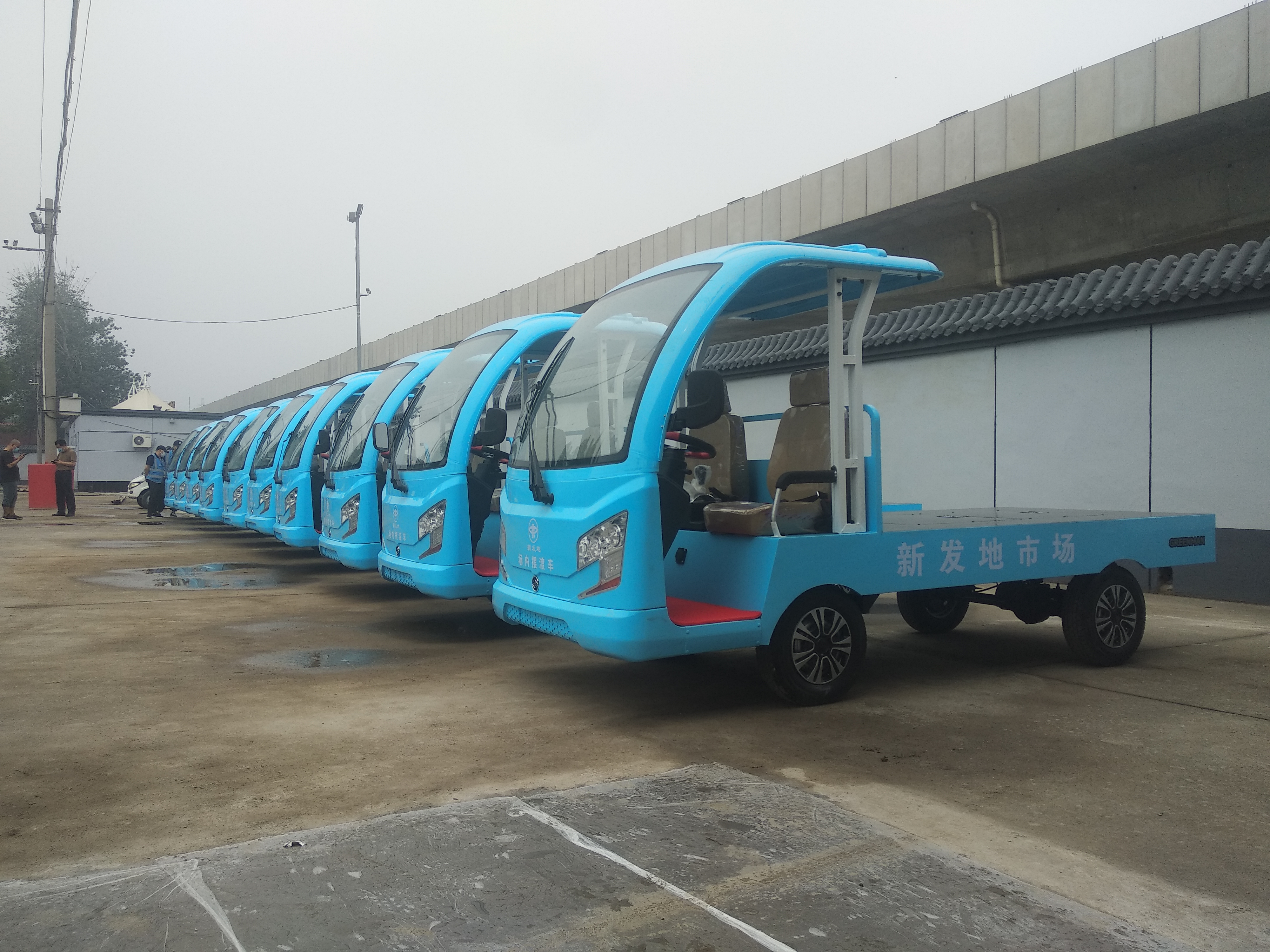 2020年8月15日早7:38,伴隨著瓜果蔬菜的芬芳,久違的新發(fā)地批發(fā)市場(chǎng)正式復(fù)市。隨之正式上崗的還有20輛綠友電動(dòng)貨斗車。