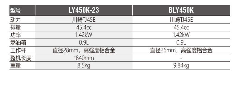 LY450K 是一款商用型割灌割草機(jī),搭載了川崎TJ45E, 45.4cc大排量發(fā)動機(jī),保證了工作的高效、快捷。