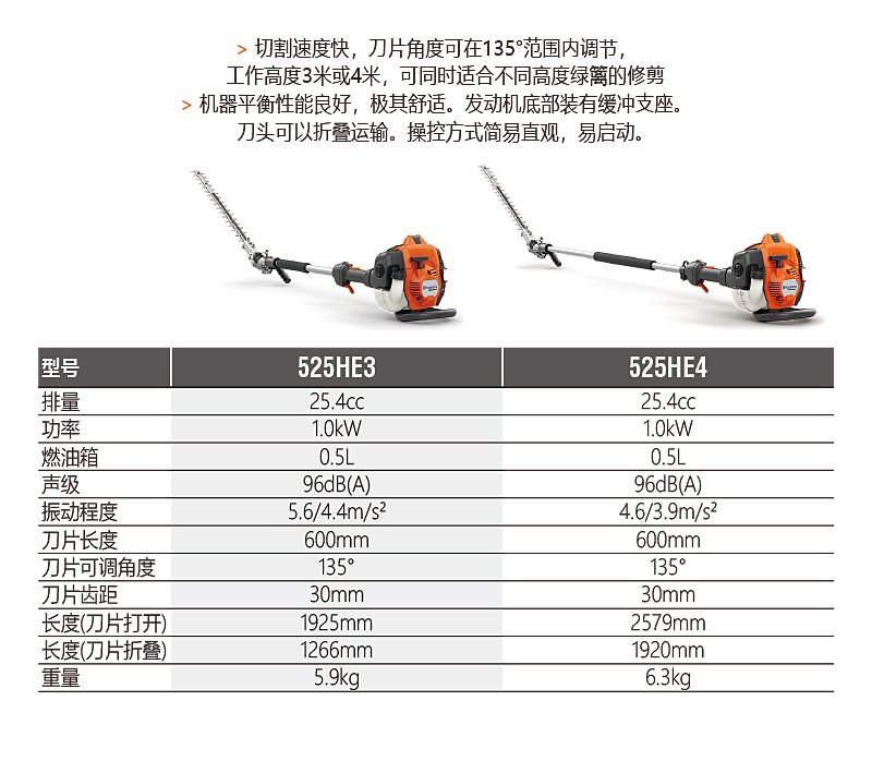 > 切割速度快,刀片角度可在135°范圍內(nèi)調(diào)節(jié),工作高度3米或4米,可同時(shí)適合不同高度綠籬的修剪。